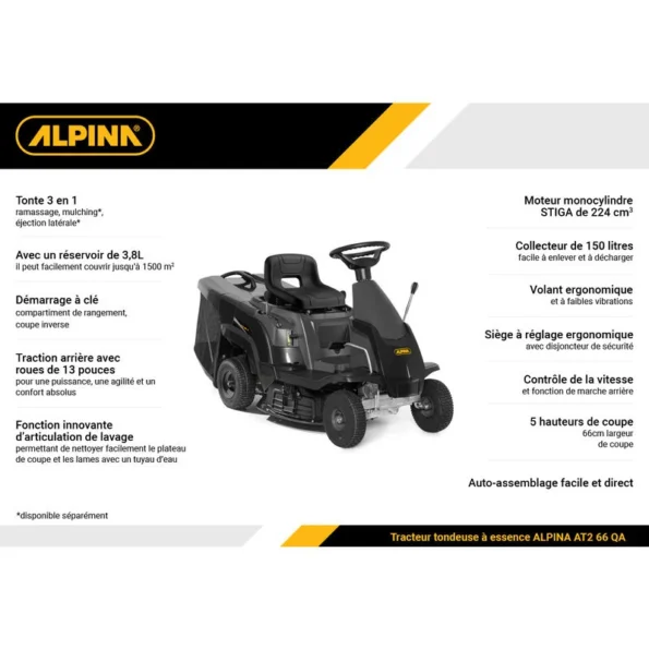Alpina AT2 66 QA – Tracteur tondeuse thermique